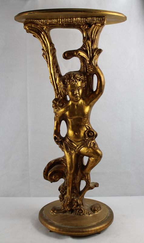 0248-Dekoratives Postament Putto Holz vergoldet 2. H. 20 Jh.