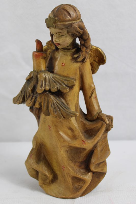 Engel mit Kerze Schnitzfigur ca. 19,5 cm