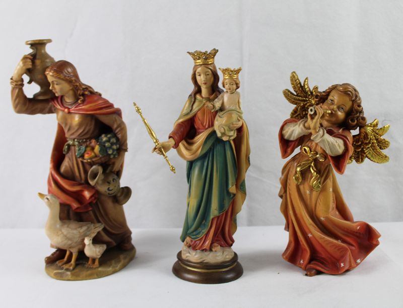 Gefasste Schnitzfiguren beschädigt Konvolut 3 St.