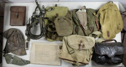 überwiegend militärische Ausrüstung aus der Zeit des 2. Weltkrieges verschiedene Länder, teilweise von der Wehrmacht, vereinzelt Bundeswehr, Messer (Parierelement beschädigt)