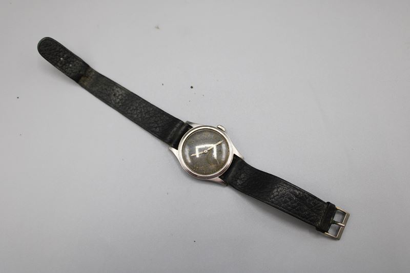 Hersteller Graef & Co. Schweiz, Ø ca. 34,7 mm (ohne Krone), Armband später ergänzt, die Uhr läuft an (Ganggenauigkeit u. Laufdauer nicht geprüft), Ziffernblatt etwas ausgeblichen, Altersspuren