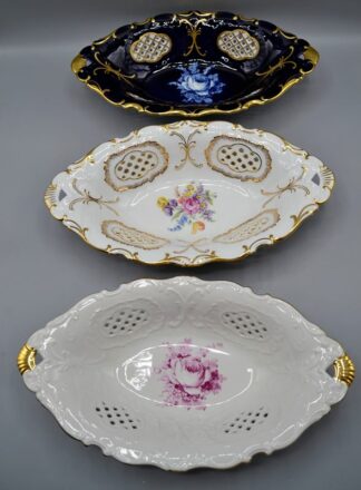 0272-Pirkenhammer Porzellan Prunkschalen Durchbruchschalen oval Konvolut 3 St.