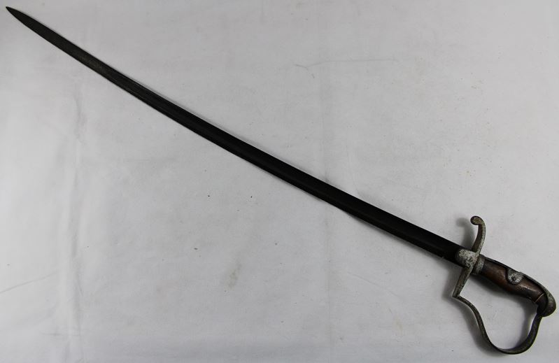 Klinge ca. 83 cm, Gesamtlänge ca. 96 cm, Griffwicklung fehlt, Gefäß mit Spiel, Abgabe nur gegen Altersnachweis!