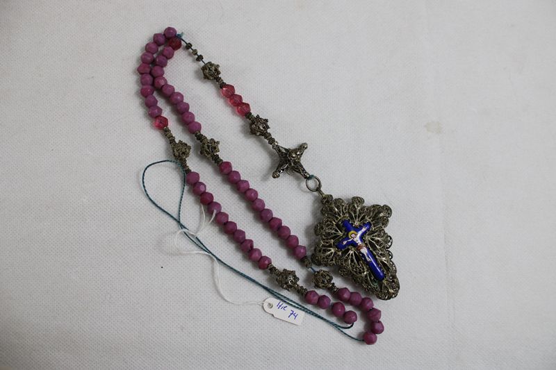 Filigranrosenkranz milchig-violette Glasperlen 19 Jh.