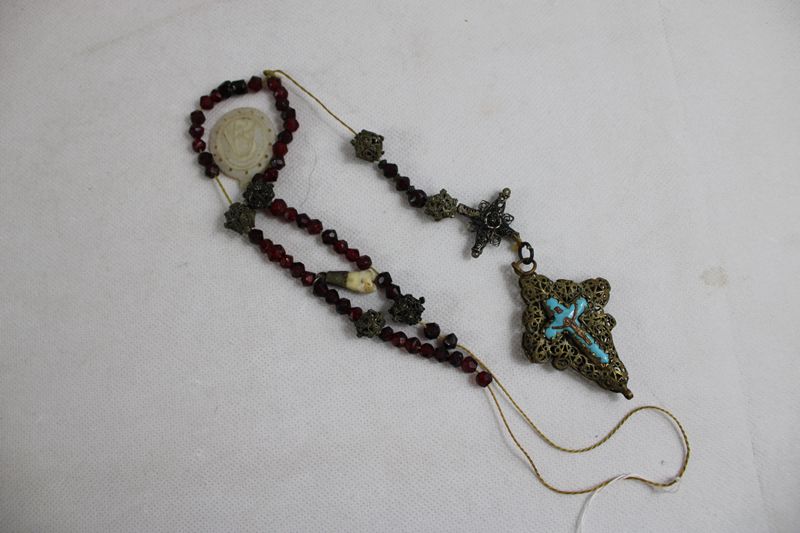 Filigranrosenkranz rote Glasperlen 19 Jh.