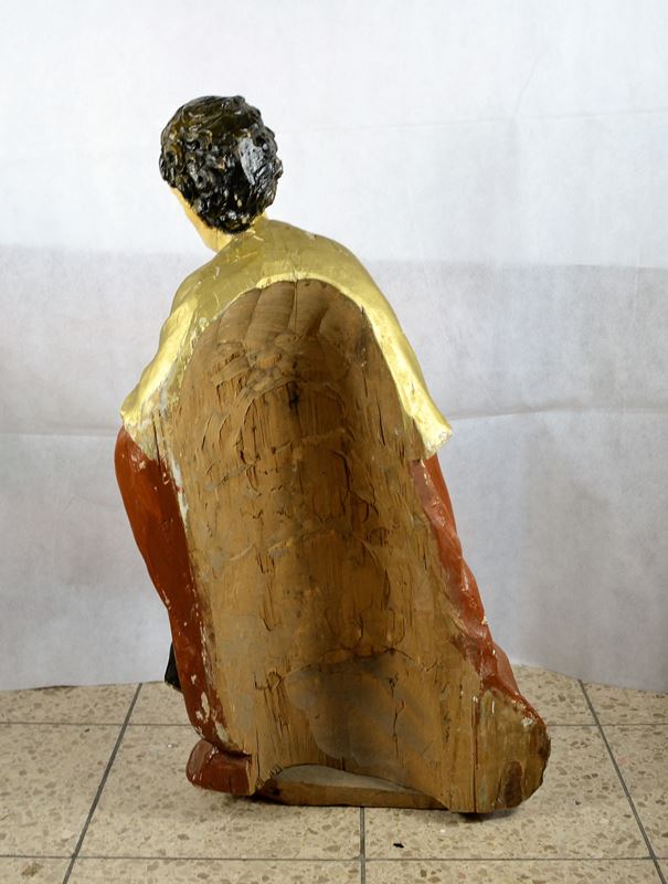 Knieender Heiliger Schnitzfigur Kirchenfigur 19 Jhdt., rückseitig ausgehöhlt, ca. 77 cm