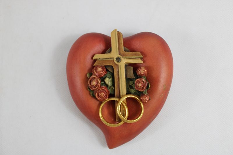 Hochzeitsherz Eheringe Holz geschnitzt ca. 13 x 11,5 cm