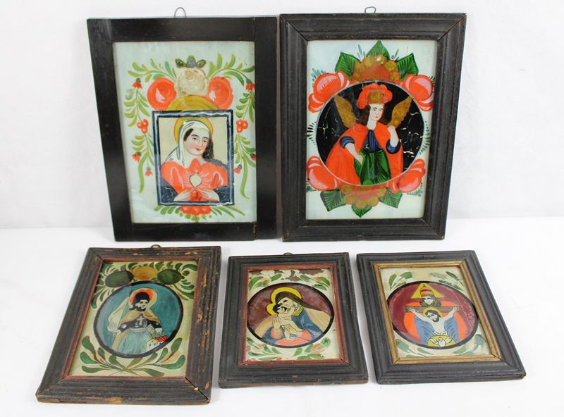 Hinterglasbilder Konvolut 5 St. 19/20 Jh.