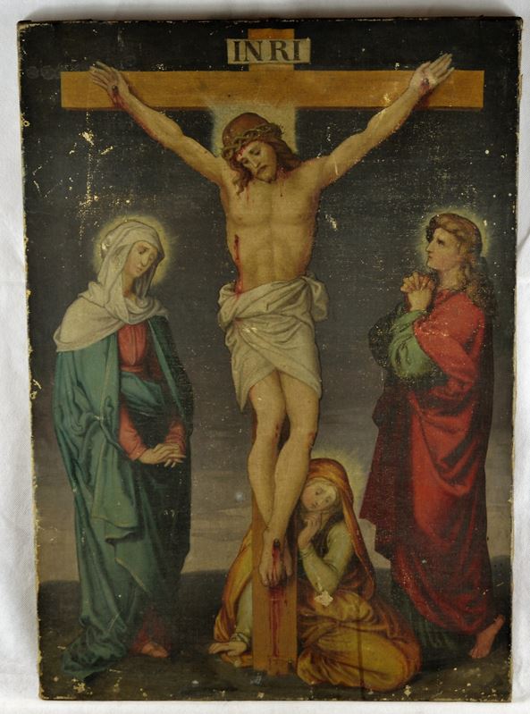 Kreuzweg Station um 1900, Öl auf Leinwand, ca. 63 x 45 cm