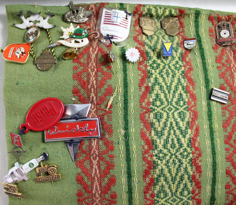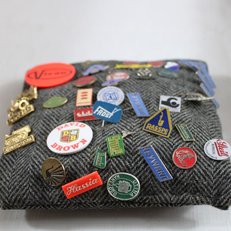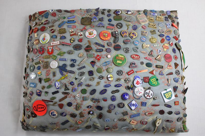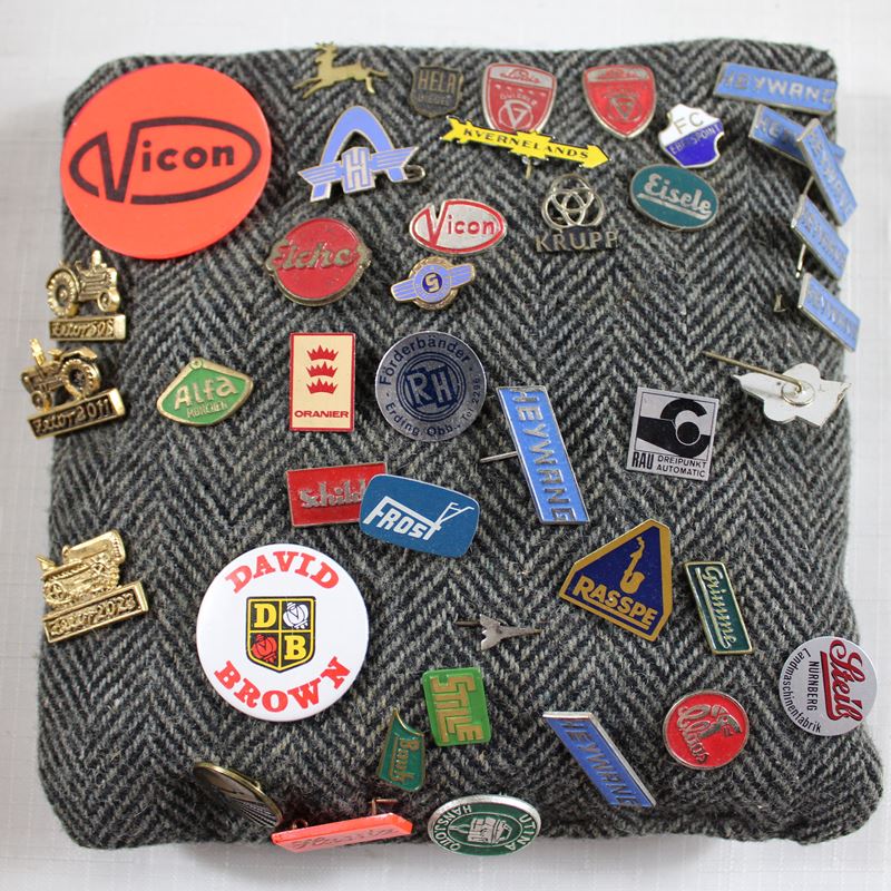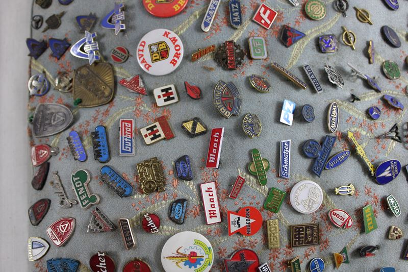 überwiegend aus den Bereichen Traktoren Landwirtschaft Automobile Motorräder etc., darunter Eicher Diesel, Schlüter, Deutz, Lanz, Mengele, Same Cassani, Ford, Mercedes Benz, Victoria, NSU, DKW, Audi, Air France, Hagedorn, Claas, Krupp, Porsche Diesel, Hanomag, Linde Güldner, Fiat, Magirus Deutz, Goggo Mobil, Glas Automobil, NSU Quickly Embleme und vieles mehr