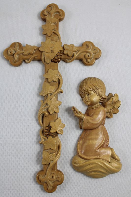 Kreuz Engel holzgeschnitzt Konvolut 2 St.