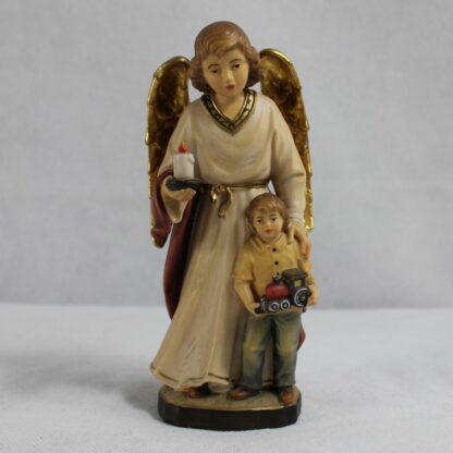 0305-Schutzengel mit Junge Schnitzfigur ca. 14 cm