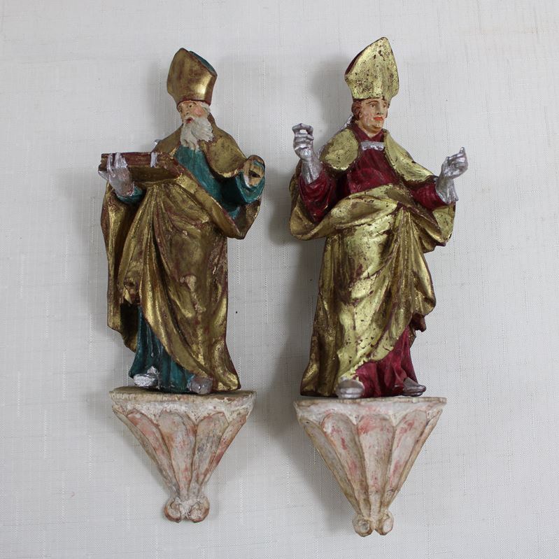 0306-2 Bischöfe Schnitzfiguren mit Sockel 18 Jh.