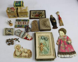 tlw. Kreuze Holz geschnitzt, Wandtafeln aus Wachs