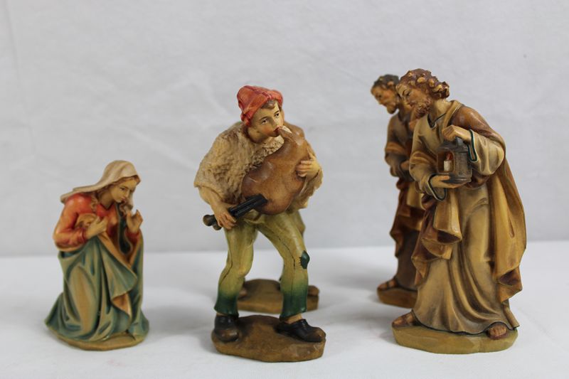 0309-Krippenfiguren Schnitzfiguren Konvolut 5 St.