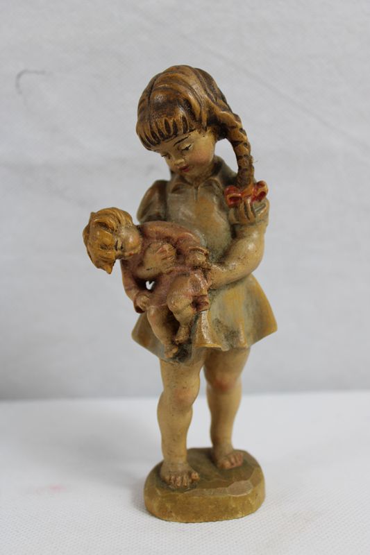 Mädchen mit kleinen Bruder Schnitzfigur ca. 14 cm