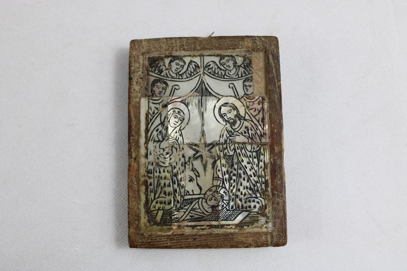0324-Perlmutt Tafel Geburt Christi Krippe 19 Jh.