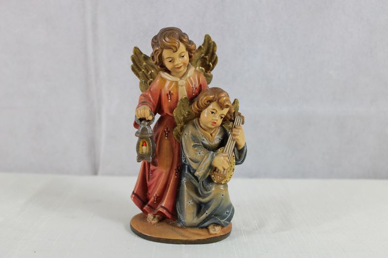 Engel mit Laterne und Laute Schnitzfigur ca. 14,5 cm