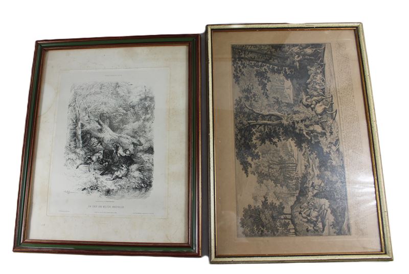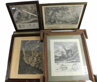 Johann Elias Ridinger Friedrich Gauermann Radierungen Grafiken Konvolut 8 St., überwiegend Nachdrucke, 7 x Ridinger, 1 x Gauermann, Altersspuren/Flecken