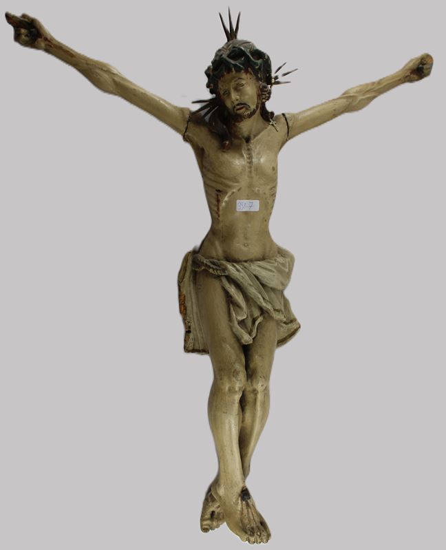 Christus Korpus geschnitzt ca. 83 cm 19 Jh., Lendentuch u. Finger beschädigt