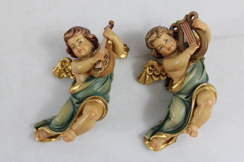 0336-Paar Putti Wandengel mit Musikinstrumenten