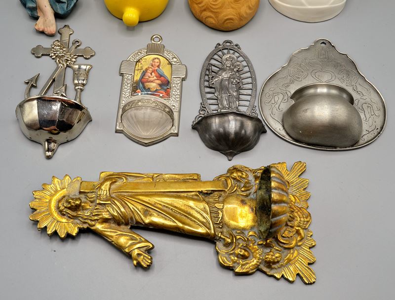 0340-Weihwasserbehälter Weihwasserkessel Konvolut 9 St.