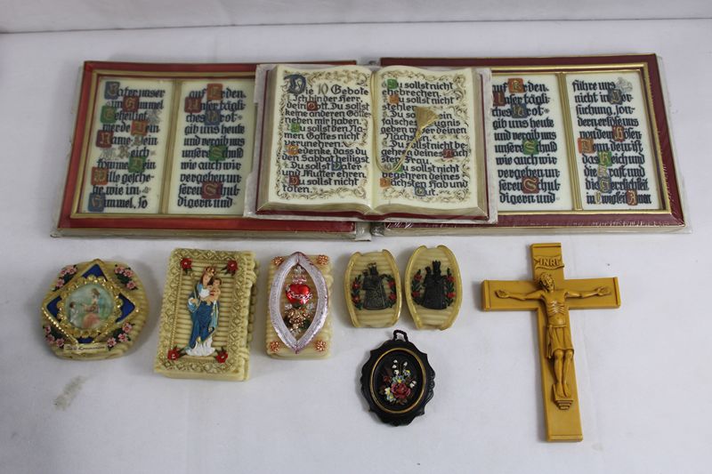 Wachs Wandtafeln 10-Gebote Vater unser (noch eingeschweißt), alte Wachsstöckl etc.