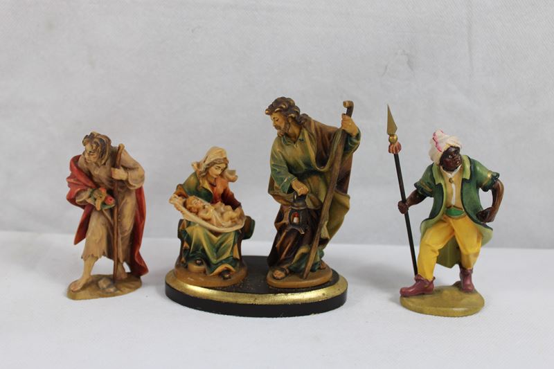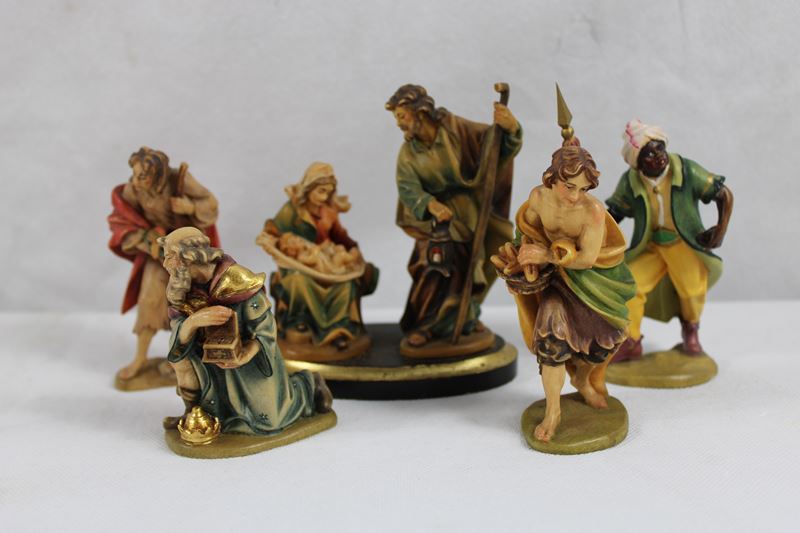 0346-Krippenfiguren Schnitzfiguren Konvolut 5 St.
