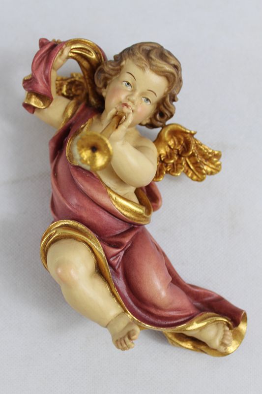 Schnitzfigur, Vergoldung der Trompete leicht berieben