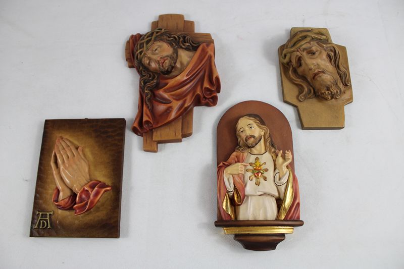 Religiöse Wandreliefe Christus, betende Hände Konvolut 4 St.