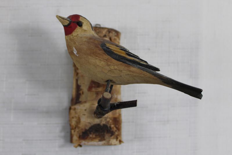 0351-Holzvogel Stieglitz geschnitzt Bay. Wald 20 Jh.
