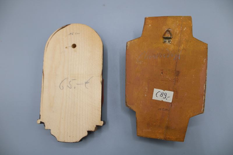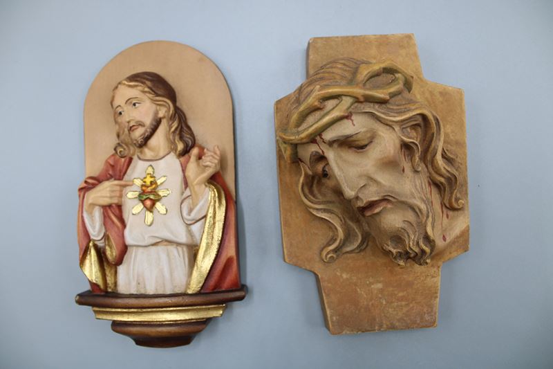 Holz geschnitzt, ca. 13,5 u. 14,5 cm