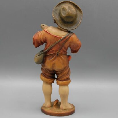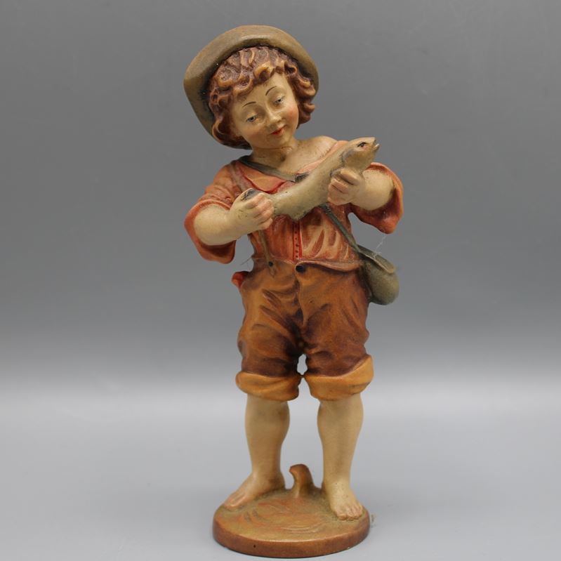 Knabe mit Forelle Angler Schnitzfigur ca. 16,5 cm