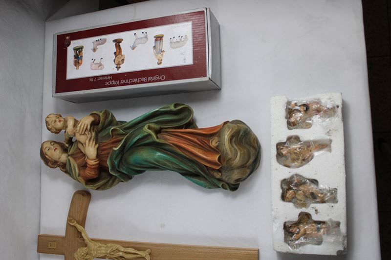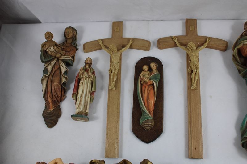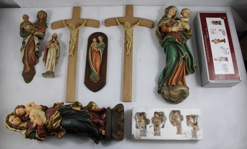 Madonnen Kruzifixe Krippenfiguren Putti etc. Konvolut 9 St.