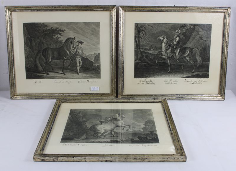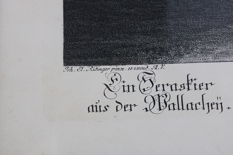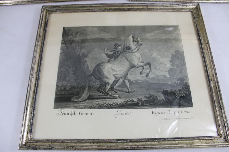 auf 2 St. wird der Sohn Martin Elias Ridinger als Stecher benannt, auf einem Blatt ist kein Stecher vermerkt, aufwendig gerahmt und verglast, ca. 46 x 39,5 cm