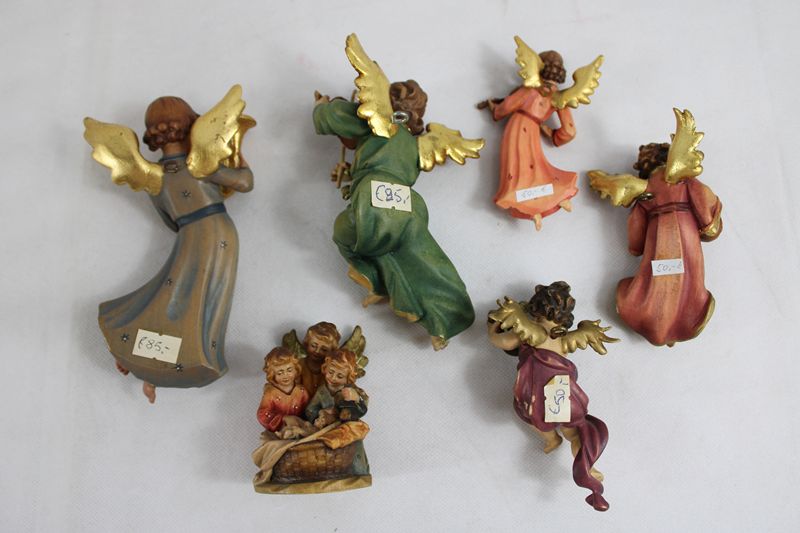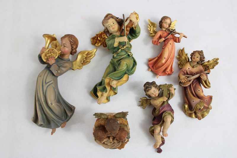 Wandengel Putti etc. Schnitzfiguren Konvolut 6 St.