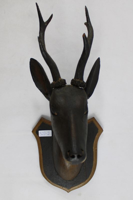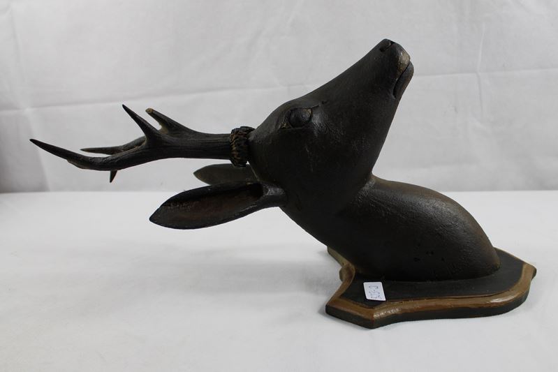 Gehörn ebenfalls aus Holz (kl. Beschädigung), Höhe ca. 46 cm
