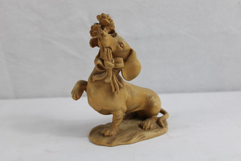 Dackel mit Rosen Schnitzfigur ca. 15,5 x 14 cm