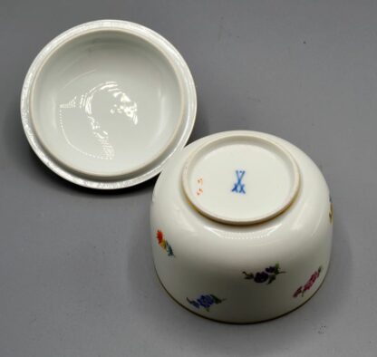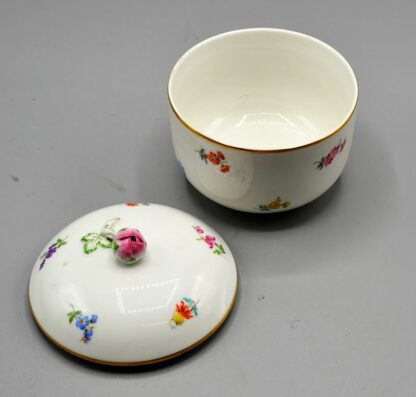 Meissen Deckeldose, 1. Wahl, bemalte Streublümchen, Ø 11 cm Höhe 11 cm
