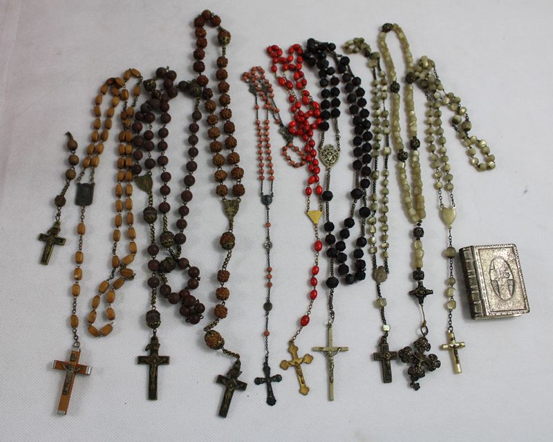 darunter 1 Filigranrosenkranz, 1 Silber Rosenkranz u. Perlmutt Rosenkränze