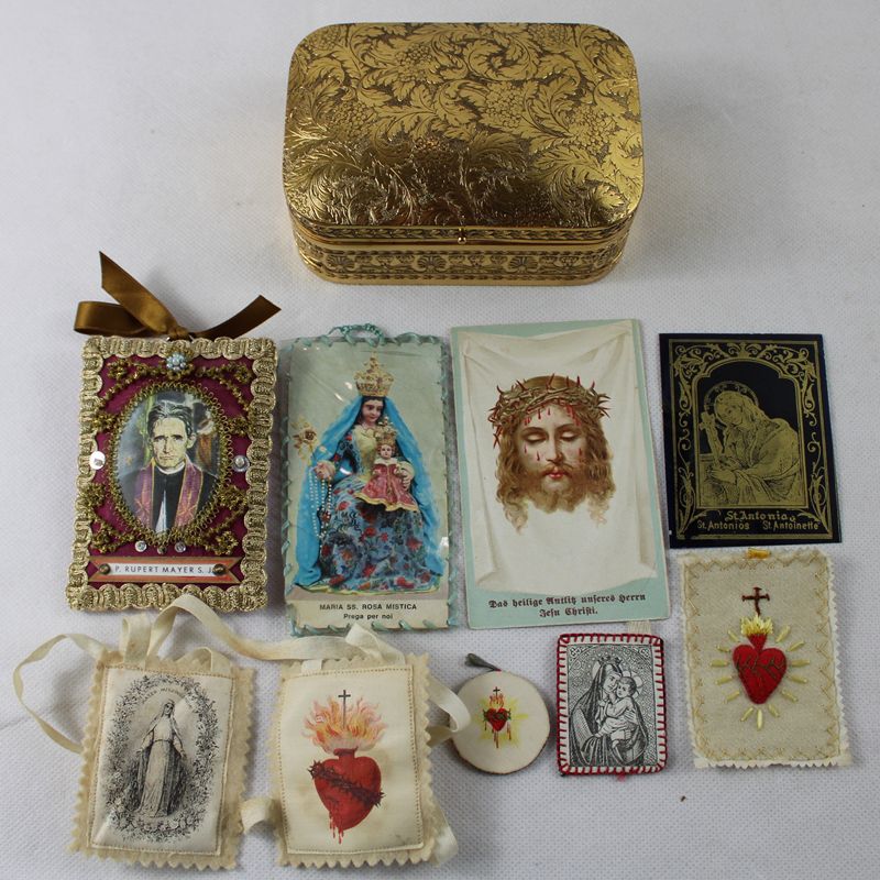0391-Dose mit Andachtsbildern Breverl Skapuliere 9 St.