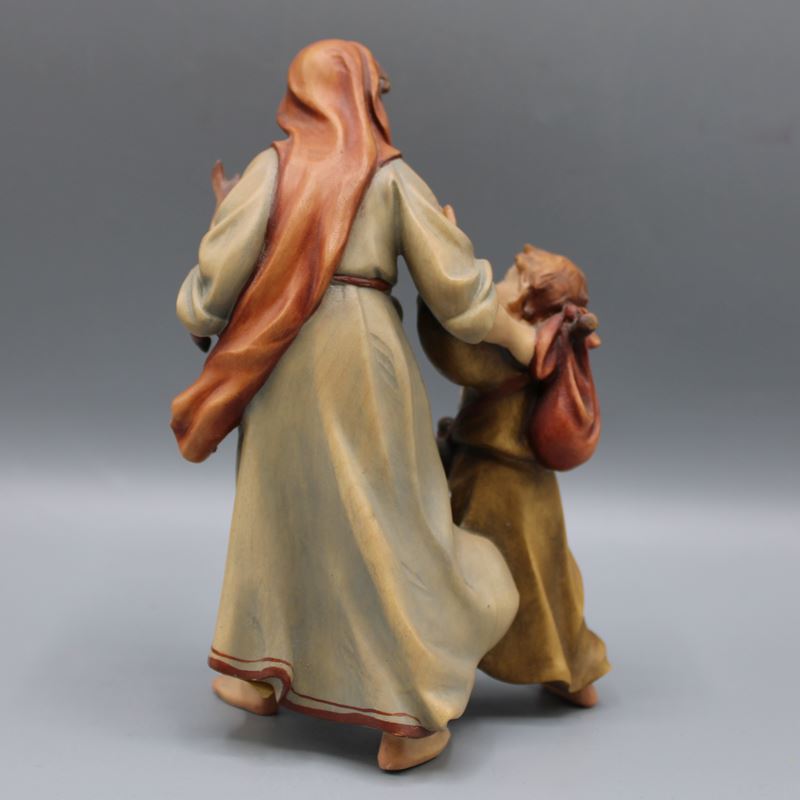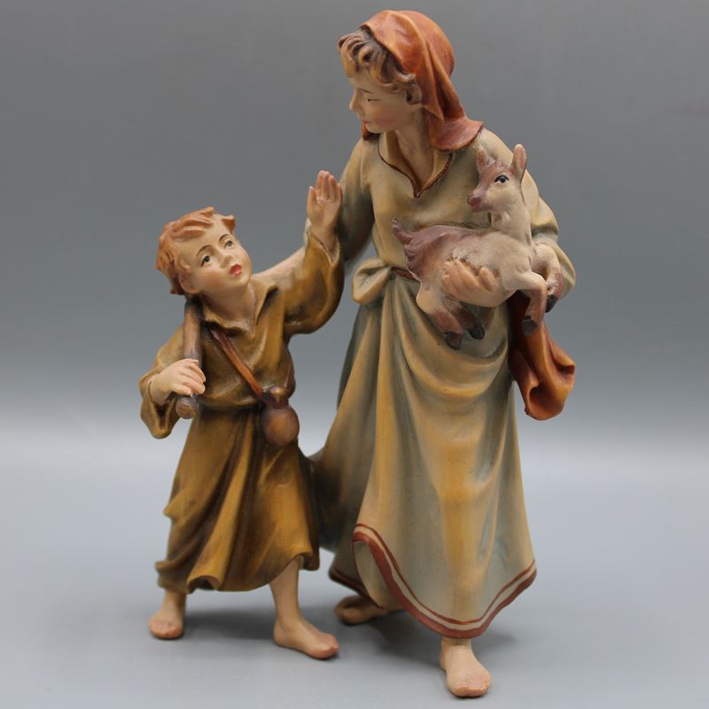 Mutter mit Knaben und Zieglein Schnitzfigur ca. 15,5 cm