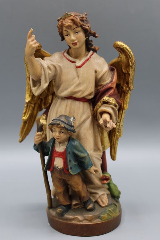 Schutzengel mit Bub Schnitzfigur ca. 14,5 cm