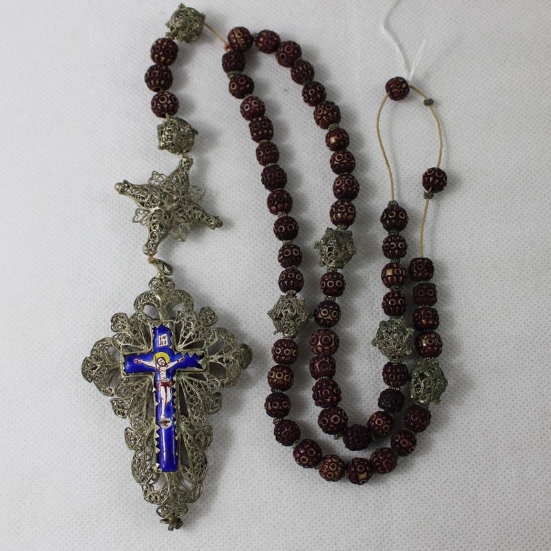 0397-Filigranrosenkranz braune Perlen süddeutsch 19 Jh.