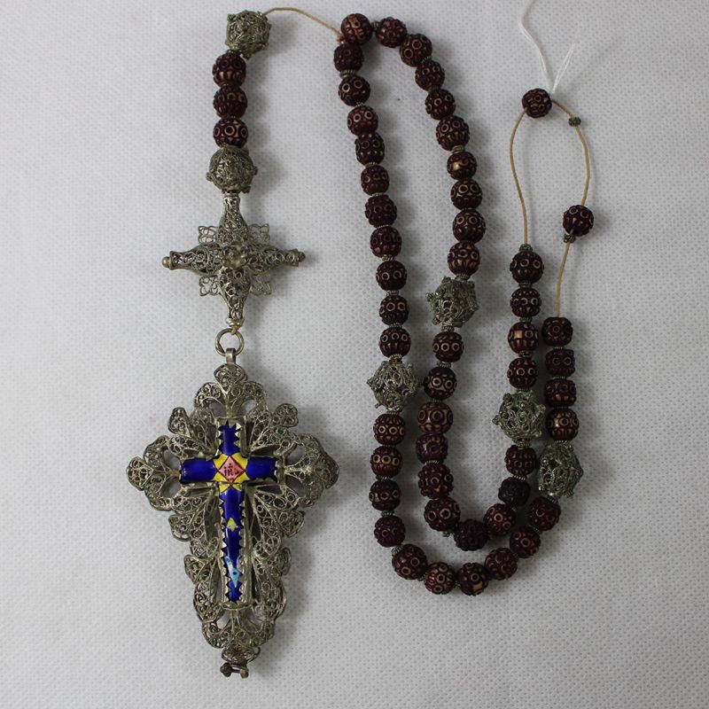Filigranrosenkranz braune Perlen süddeutsch 19 Jh.