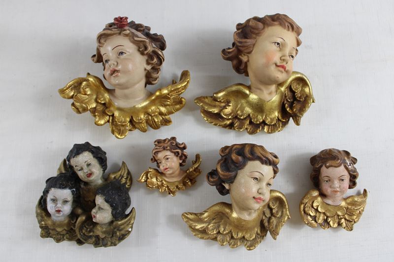 0397-Putti Köpfe Wandengel Konvolut 6 St.