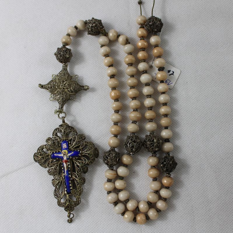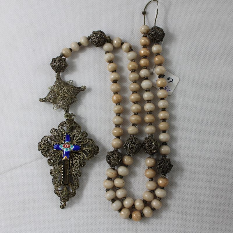 0398-Filigranrosenkranz cremefarbene Perlen 19 Jh.