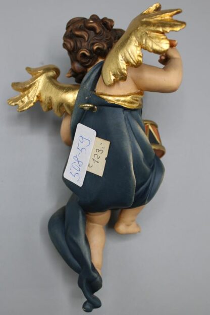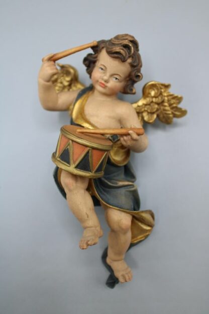 Putto Wandengel mit Trommel Schnitzfigur ca. 19 cm