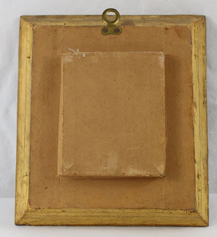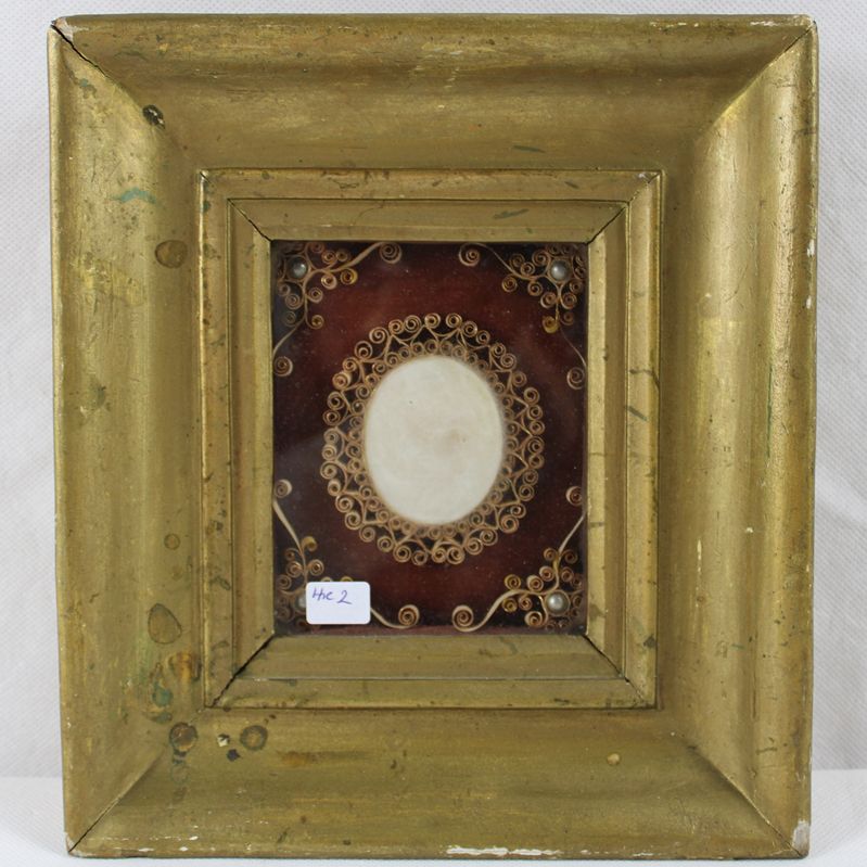 Wachsmedaillon umgeben von Krüllarbeit, gerahmt, ca. 22,5 x 20,5 cm (Rahmen mit kl. Bestossungen)
