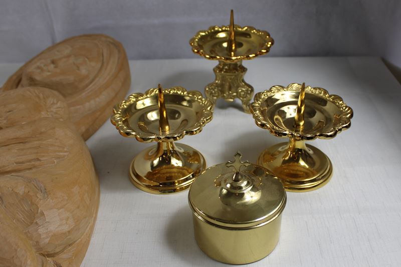 Schnitzobjekte Kerzenständer etc. Konvolut